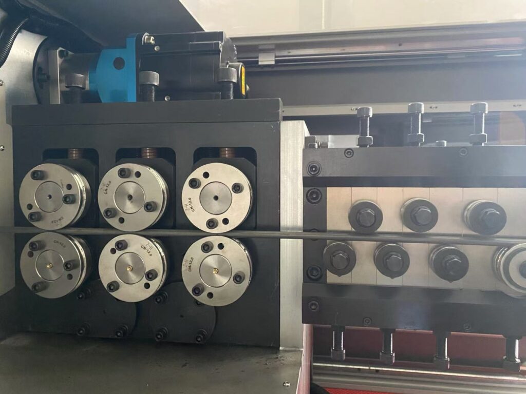 Wire feed and arm, both separate and together, when turning the head really do not turn the line, it can achieve smaller outer diameter arc and multi-circle product forming.